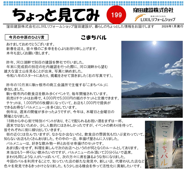 ニュースレターの独り言は、昨年参加した「こまちバル」の話です。