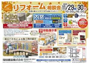 11/29(土)30(日)の二日間、駒ヶ根市内でリフォーム相談会を開催しました。