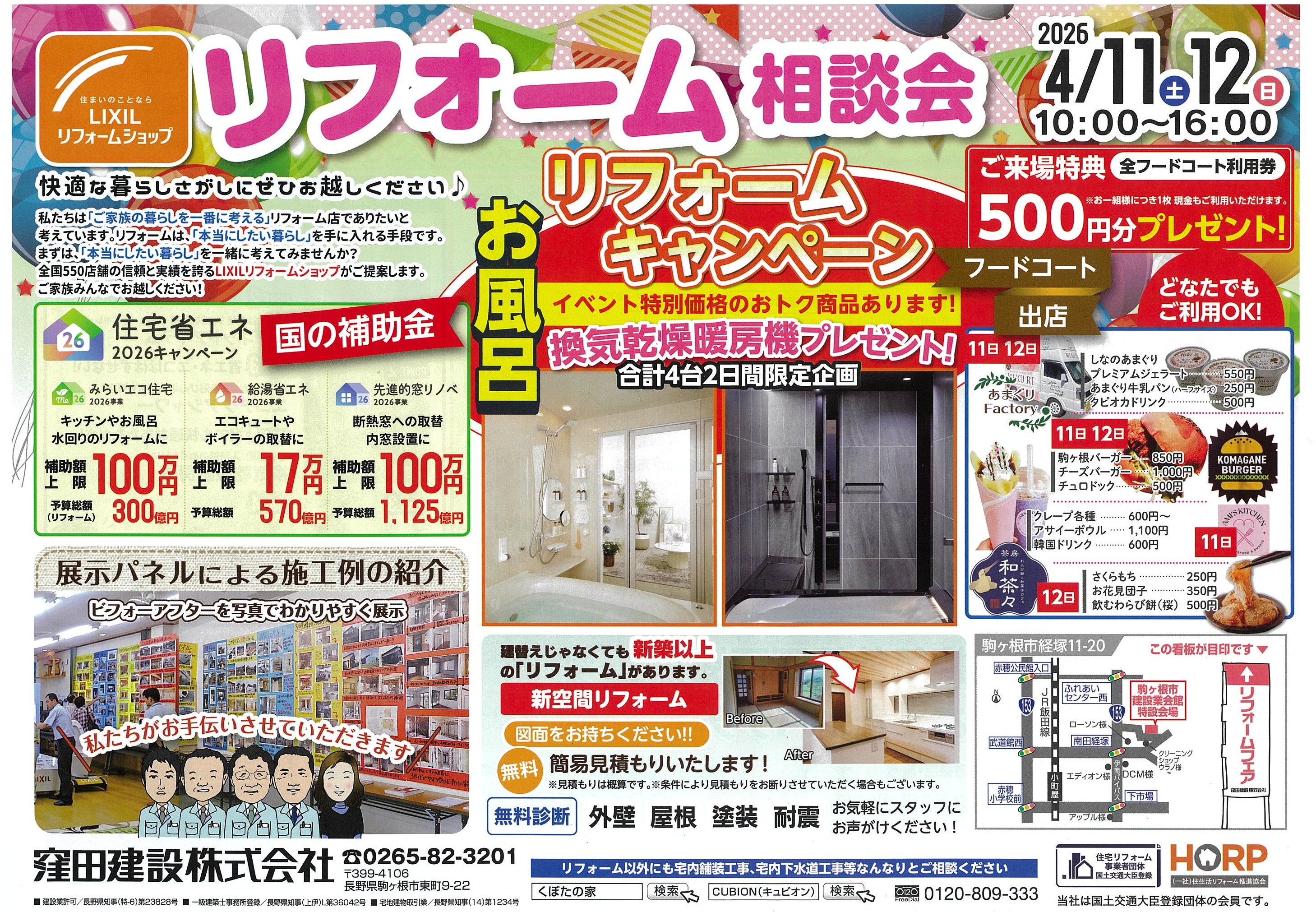 春恒例のリフォーム相談会を4/11(土)12(日)の二日間、駒ヶ根市内で開催いたします。