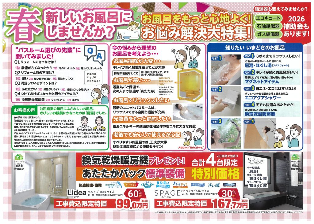 今回の特集は「お風呂=ユニットバス」です。